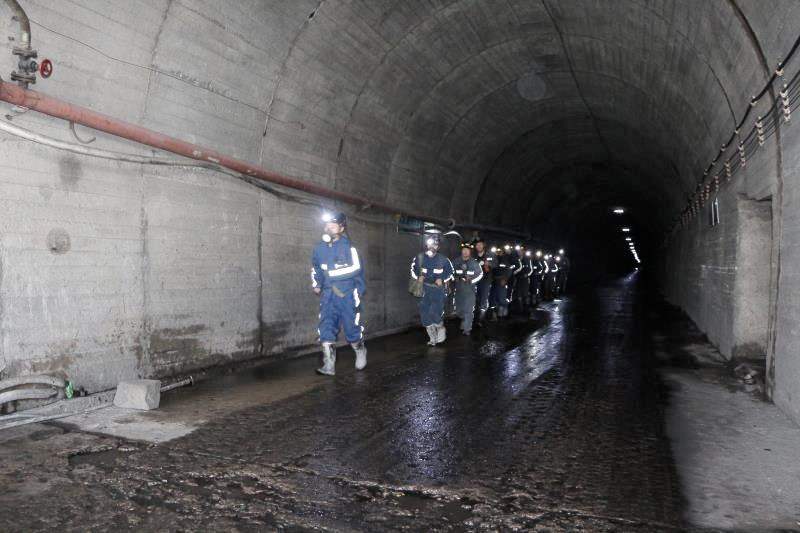 5月21日下午3点,百吉项目部模拟510综采工作面下端头采空区出现涌水,水量有增大趋势,危及矿井和职工生命安全。值班调度员立即按十项应急处置权下达停产撤人指令,并通过调度电话和井下语音广播系统通知井下所有人员迅速沿避水灾路线撤离升井,同时,第一时间向指挥部所有人员作了汇报。全体指挥部成员集结到位后,按照各自分工,有序开展救援工作。通过核对井口检身房人数、查看人员定位系统发现未升井人员及被困位置,利用调度电话和语音广播系统和被困人员联系,组织人员开展施救工作,3时30分,被困人员全部安全升井,演练活动圆满结束。
